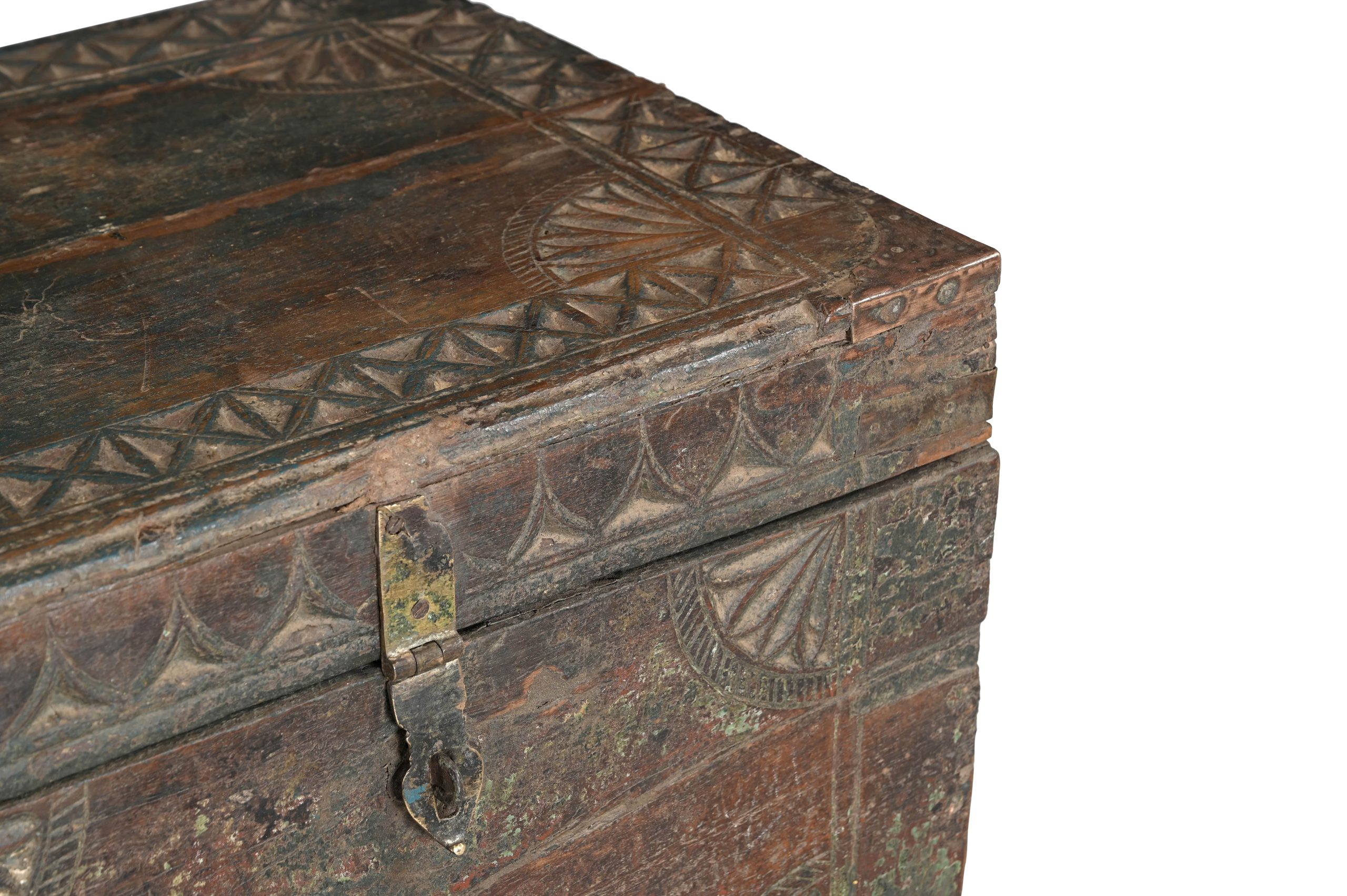 Antique Indian Painted Teakwood Blanket Chest, 21Hx31x20