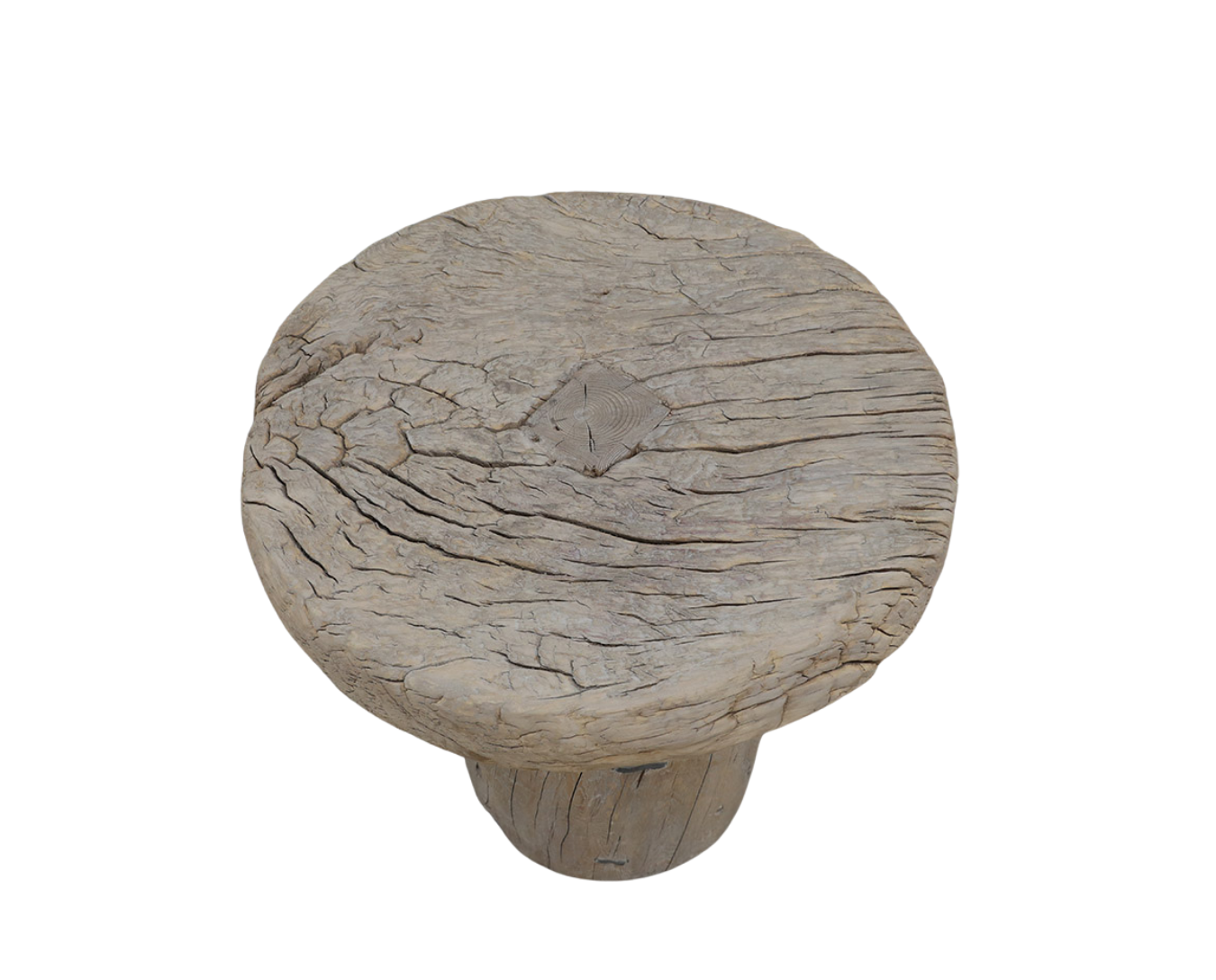 Vintage Elm Mill Wheel Table on an Axle stump base, 19Hx22x22