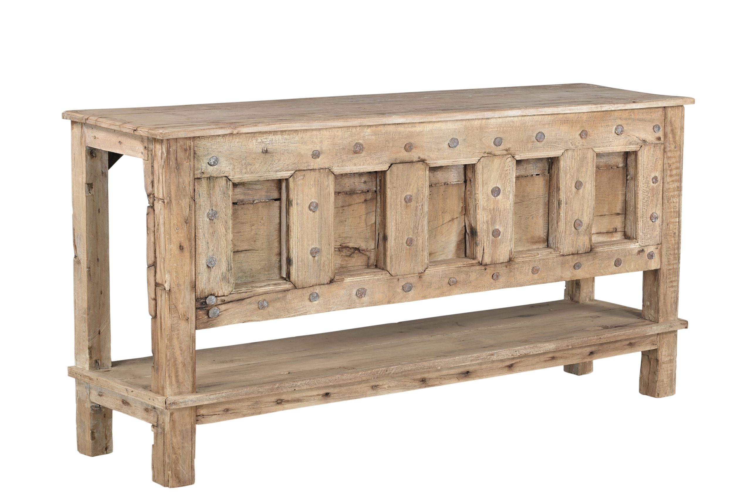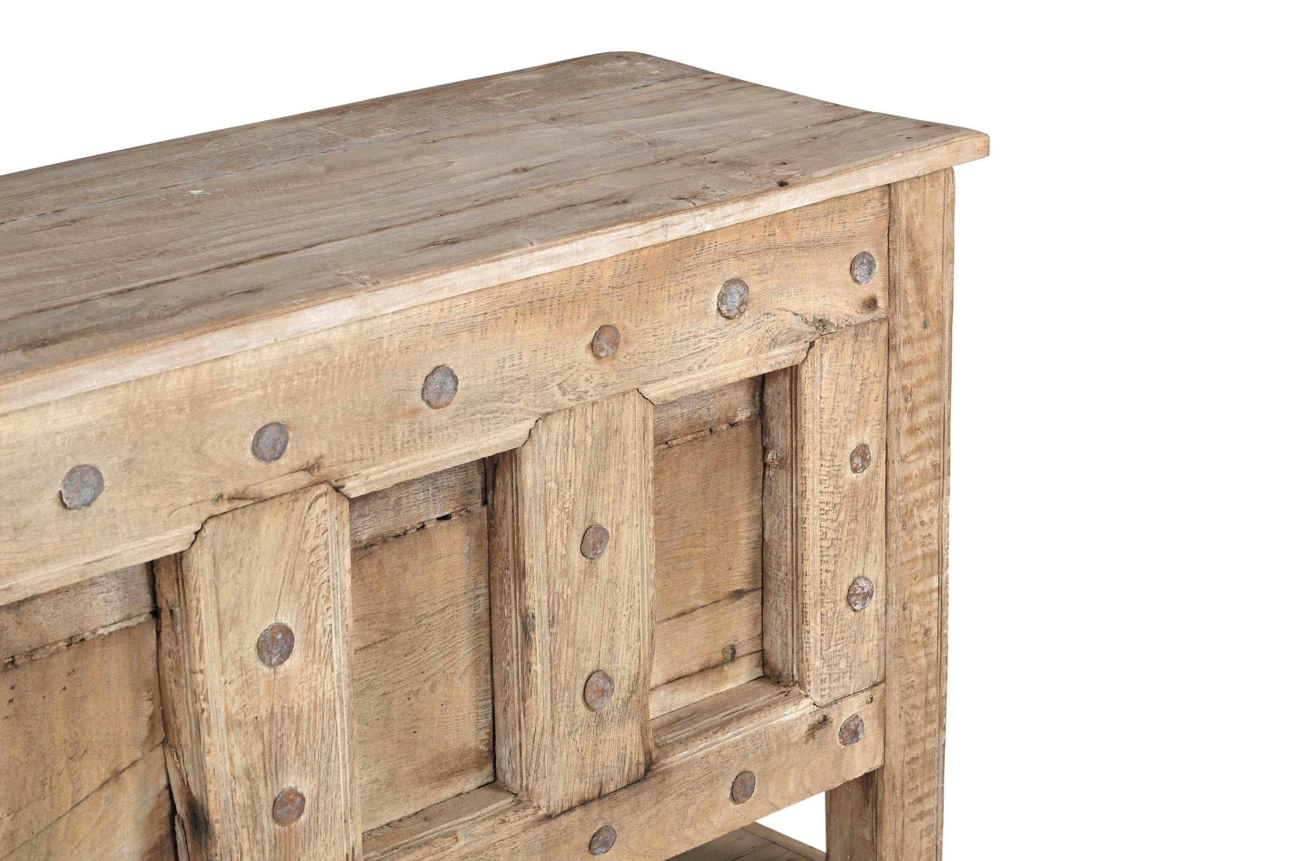 The proliferation in India of antique architectural elements, especially doors, has led to a renaissance in the creation of new furnishings using these antique elements. Antique interior doors, carvings, and paneling are used to construct armoires. Antique doors turned horizontally with antique column segments as legs are used to make both standard size headboards and complete beds. Antique doors are modified to make cabinet doors for buffet/sideboards or along with carvings, for the facade of a console table. These recreations are the ultimate expression in one of a kind upcycled furnishings.