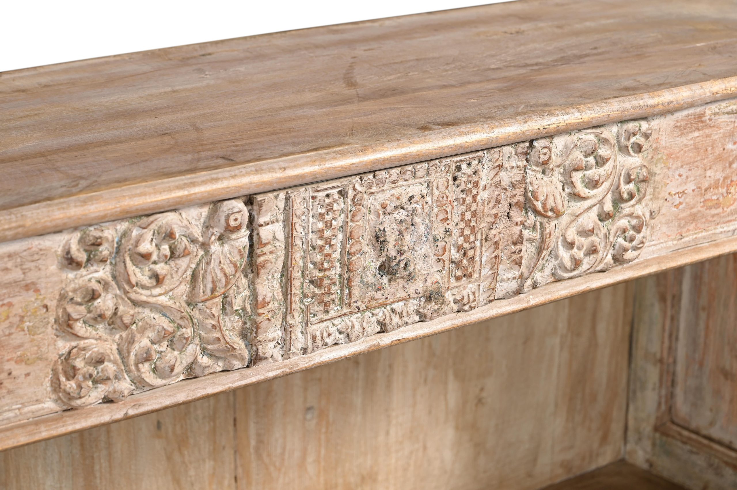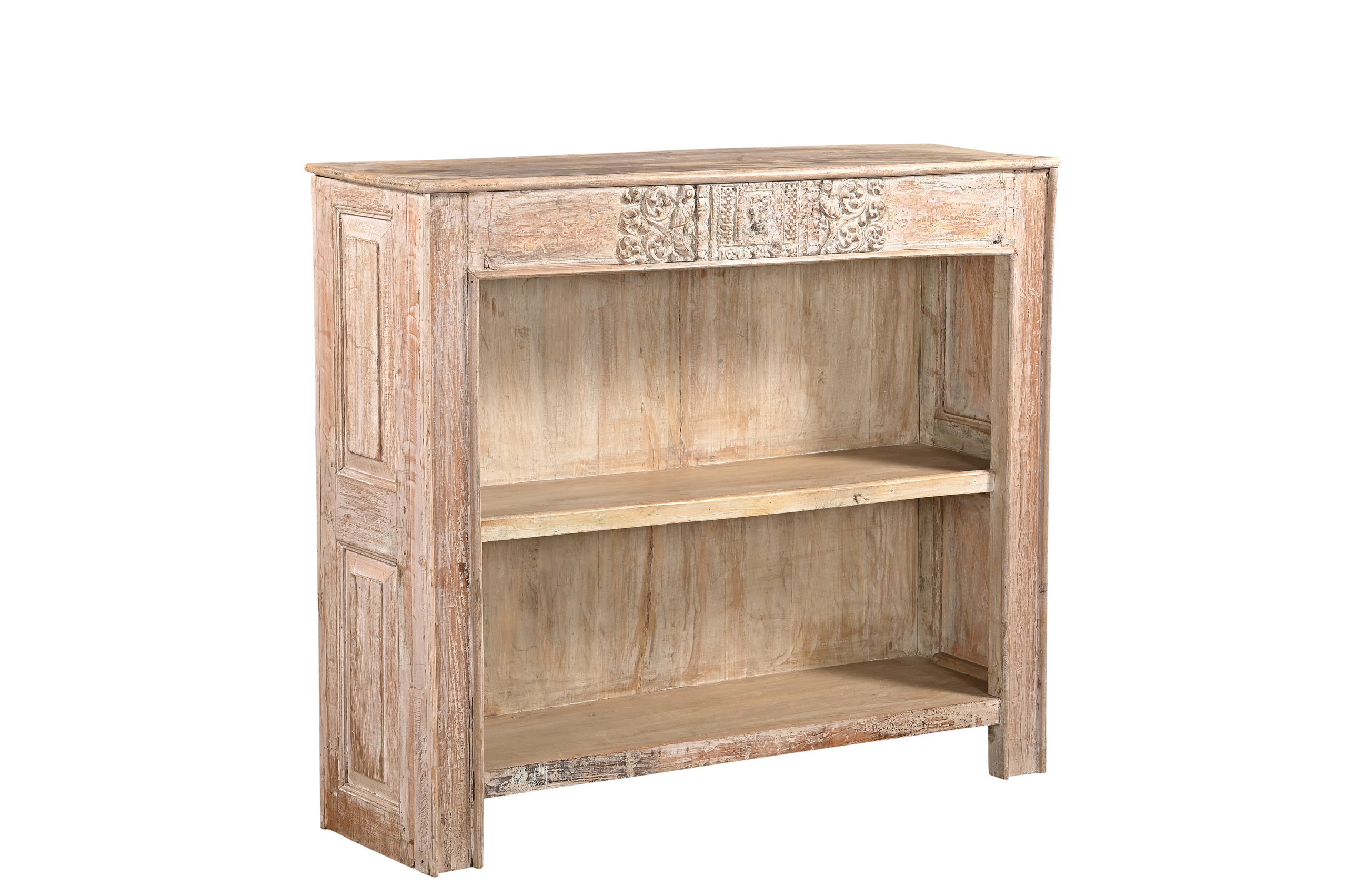 Indian Bleached Teakwood Open Bookcase/Shelf constructed from antique carvings and reclaimed wood, 41Hx49x13