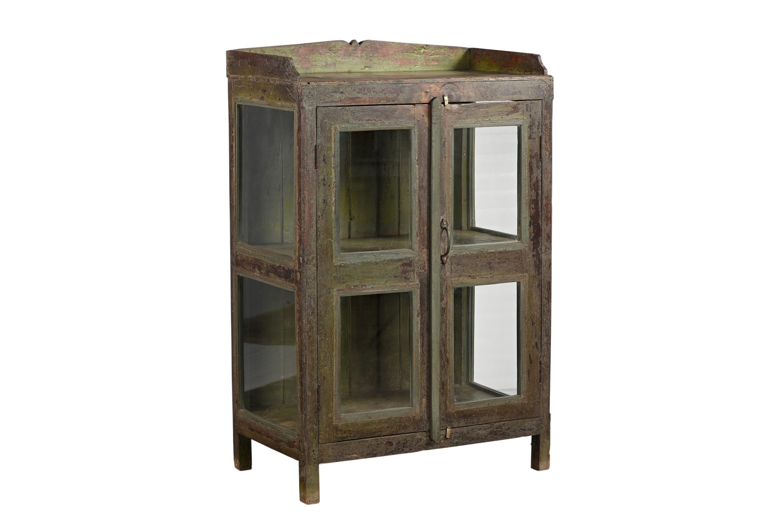 Vintage Indian Painted Teakwood Small Bookcase/Cabinet, 49x33x19