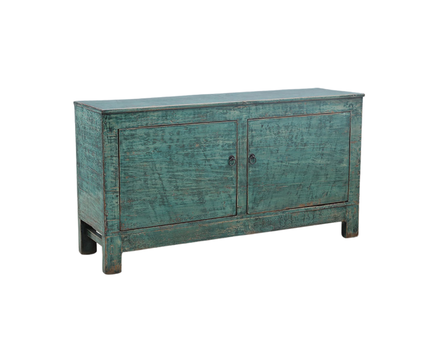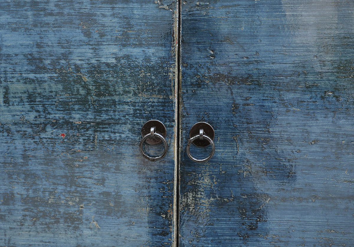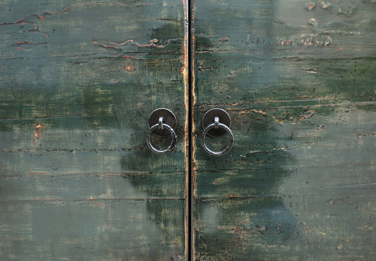 Antique Chinese Painted Elm Cabinet, 38Hx94.5×18