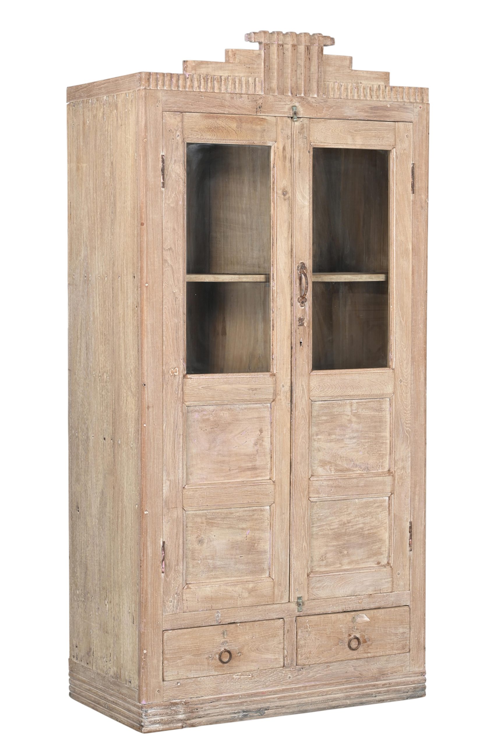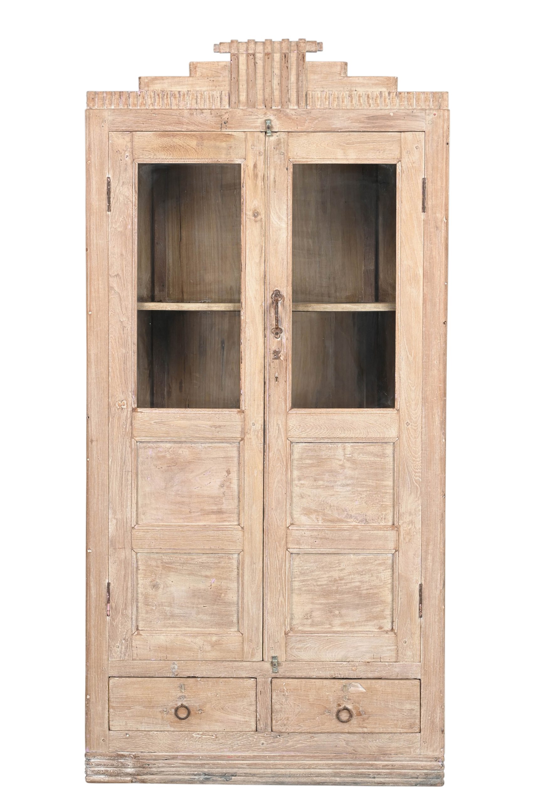 Vintage Indian Bleached Teakwood Bookcase/Armoire, 67Hx32x17