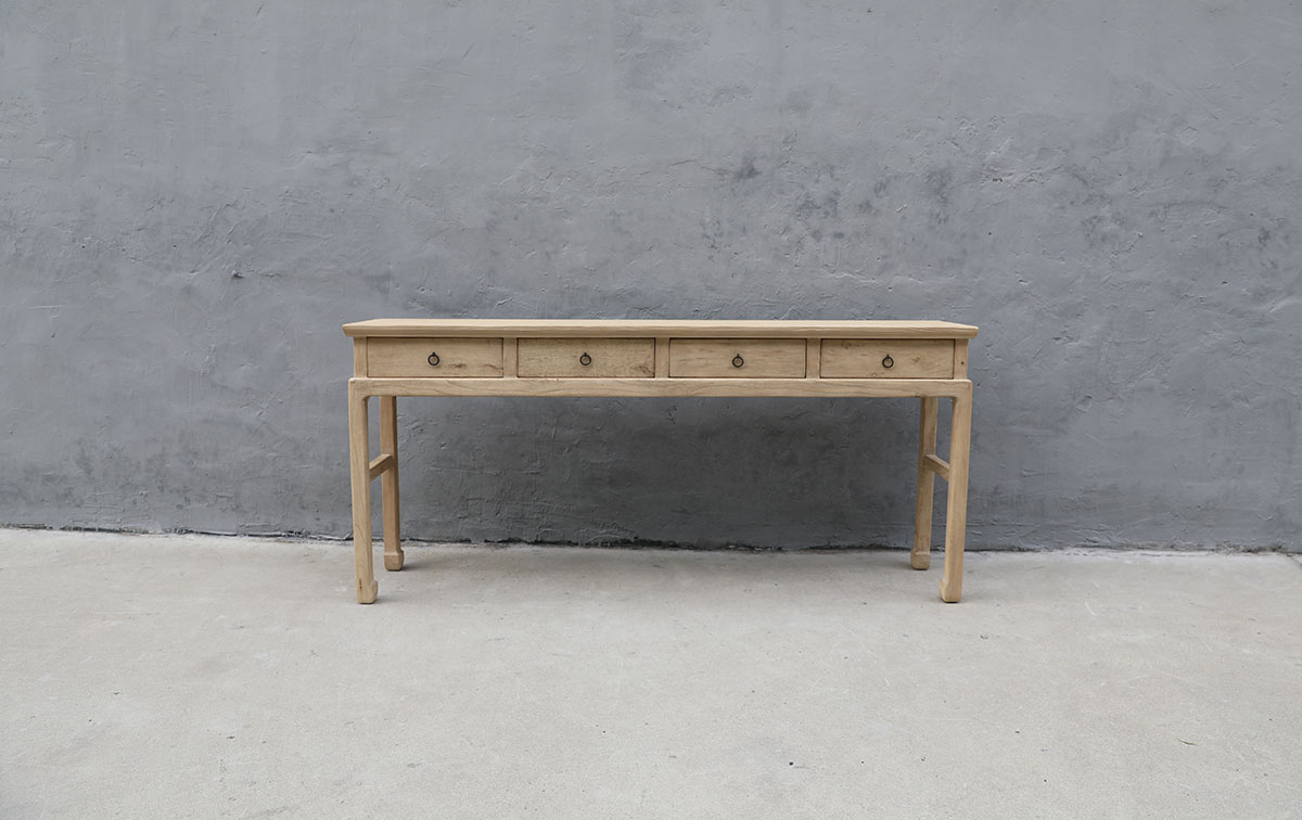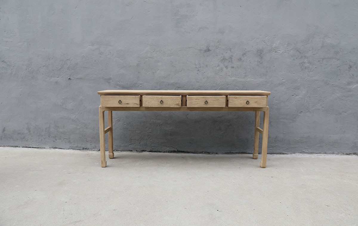 Vintage Chinese Bleached Pine Console Table, 33Hx90x19.5