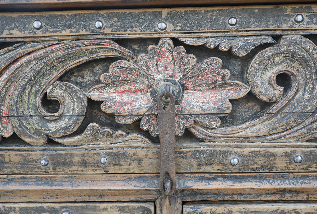 Vintage Indian Painted Teakwood Damachiya Console
