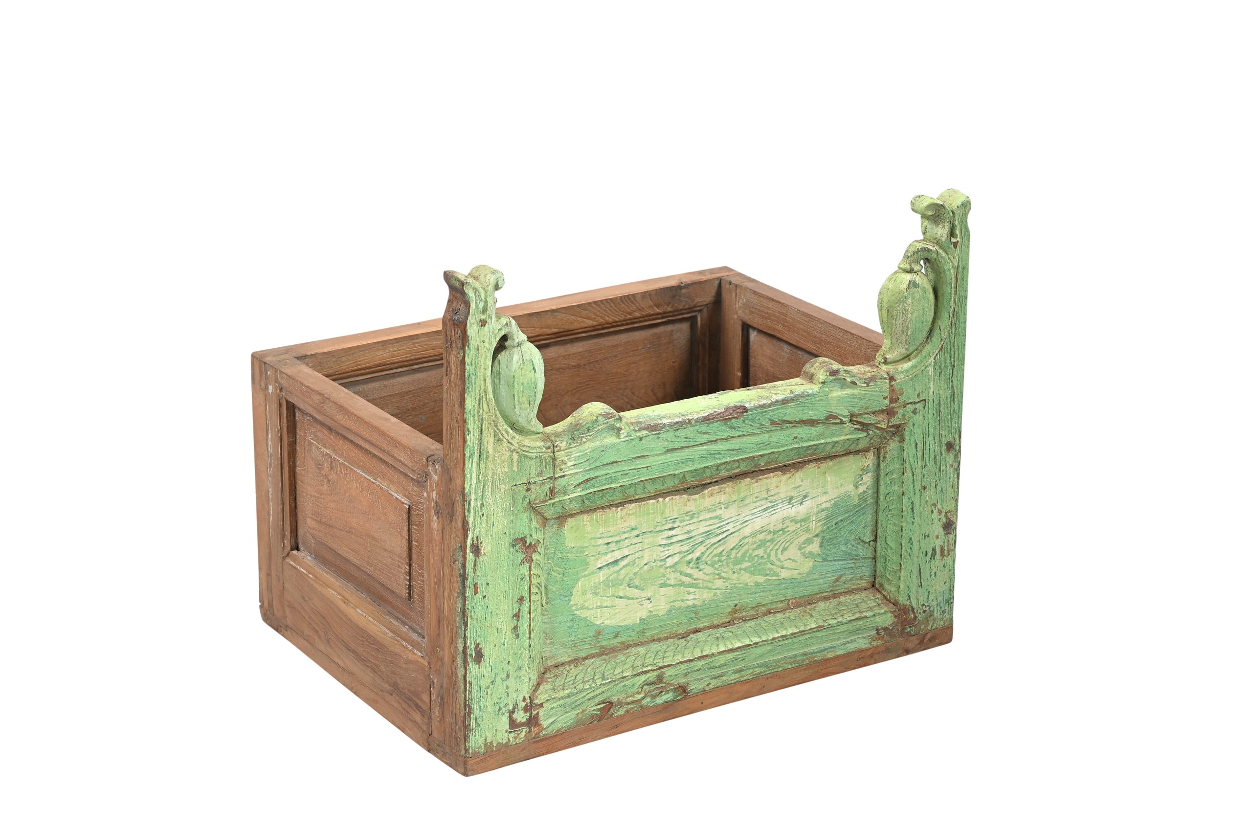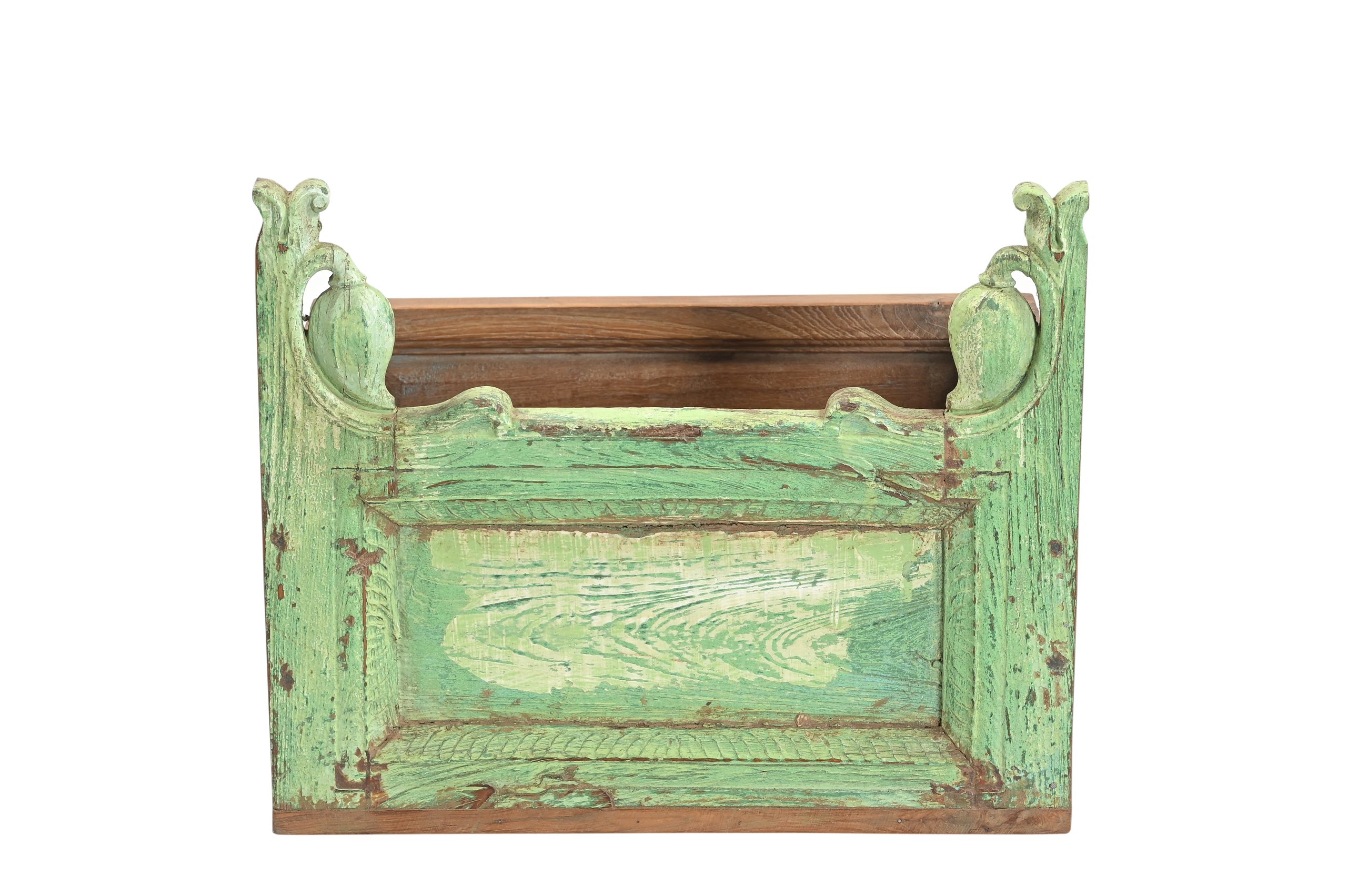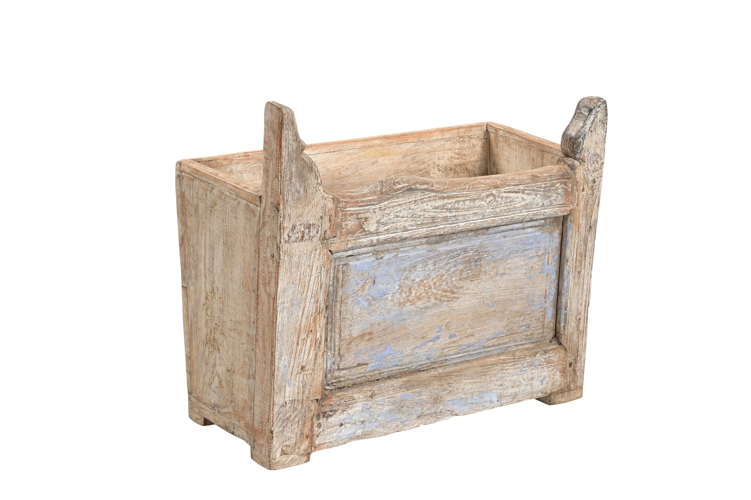 Indian Painted Teakwood Planter constructed from antique elements and Reclaimed wood, 19Hx23x17