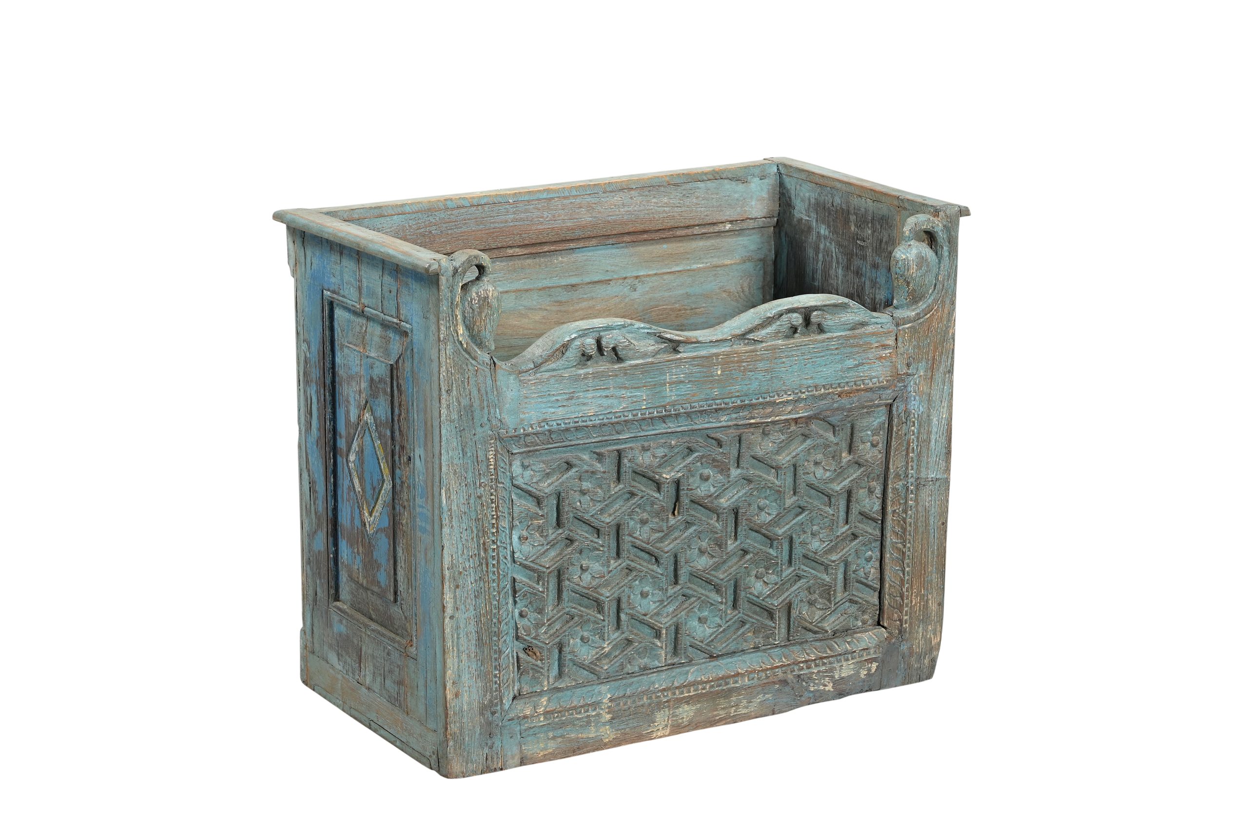 Indian Painted Teakwood Planter constructed from antique elements and Reclaimed wood, 21Hx23x12