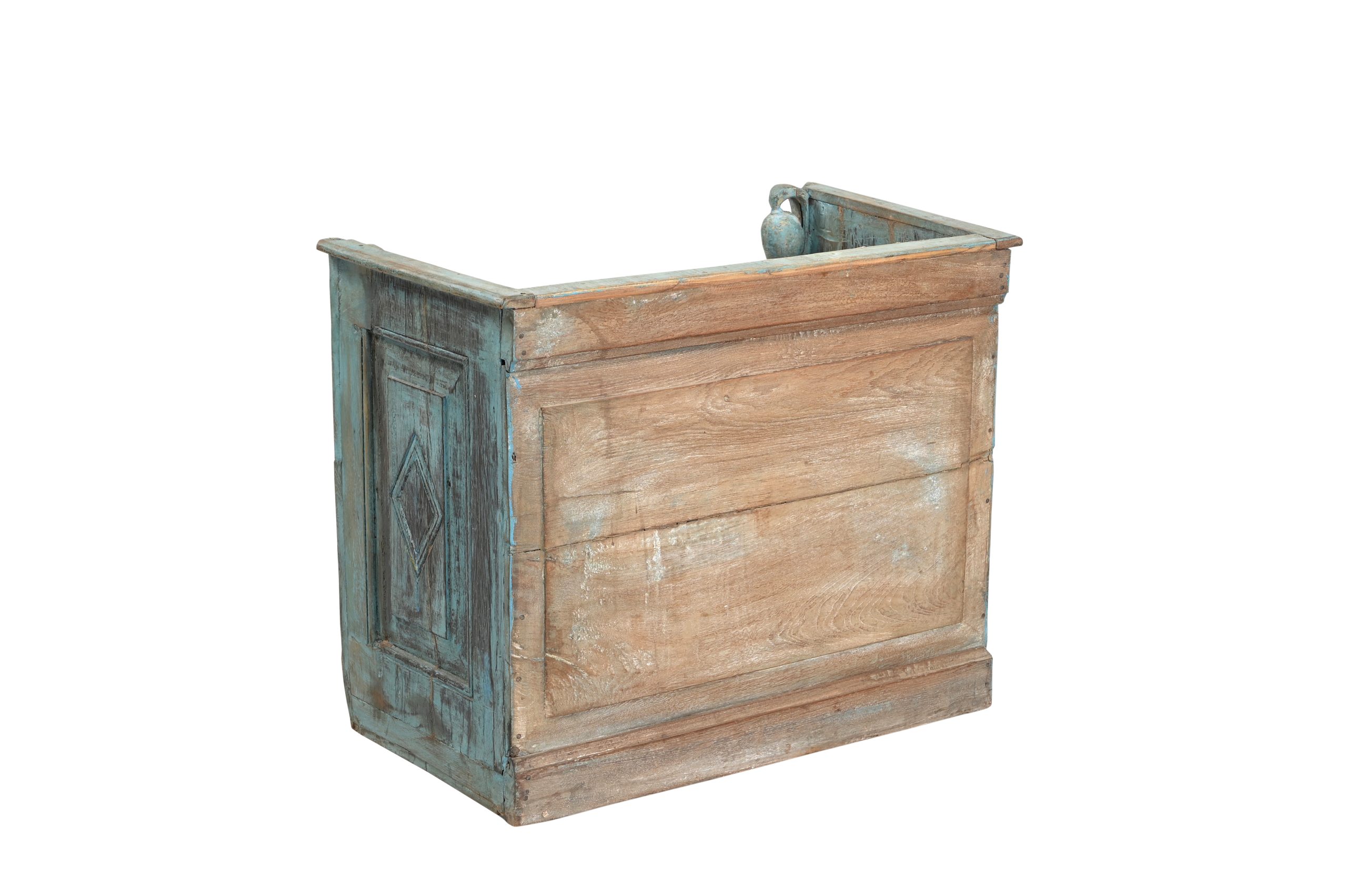 Indian Painted Teakwood Planter constructed from antique elements and Reclaimed wood, 21Hx25x15
