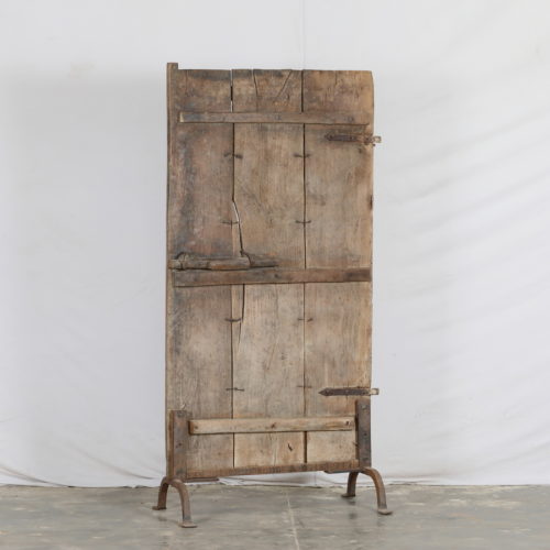Antique Indian Carved Teak Wood Gate Panel on Iron Stand, 64x33x15
