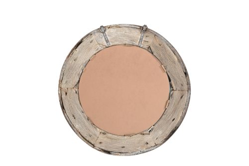 Indian Bleached Teakwood Round Mirror constructed from an Vintage Cart Wheel, 37x37x3