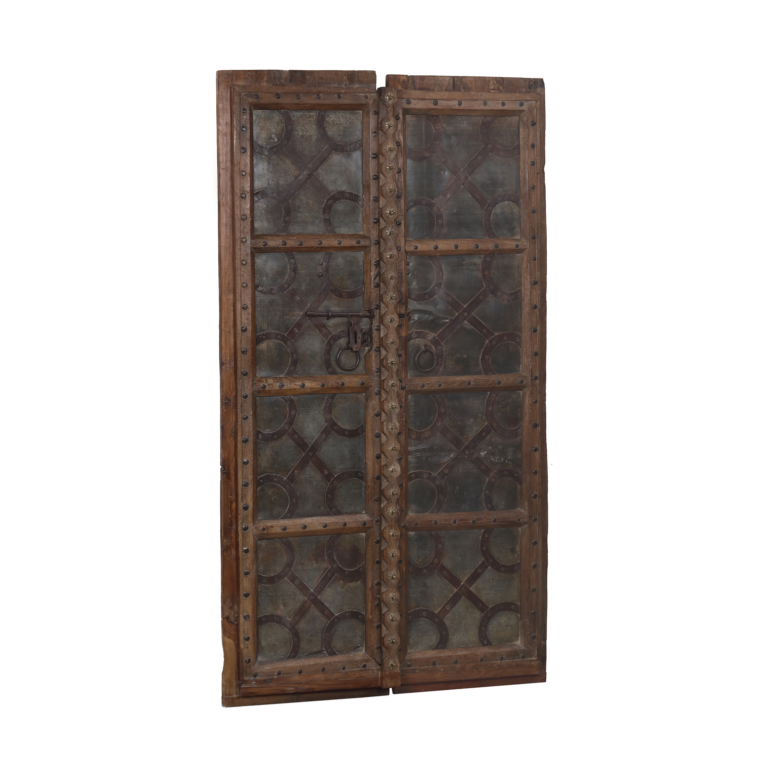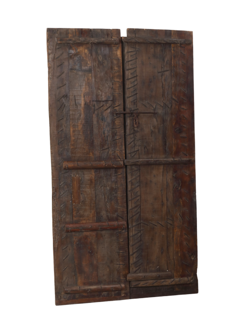 Antique Indian Carved Teakwood and Iron Door, 43x2x77.5H