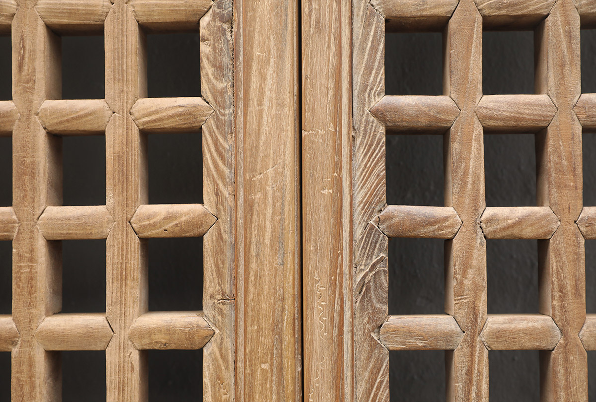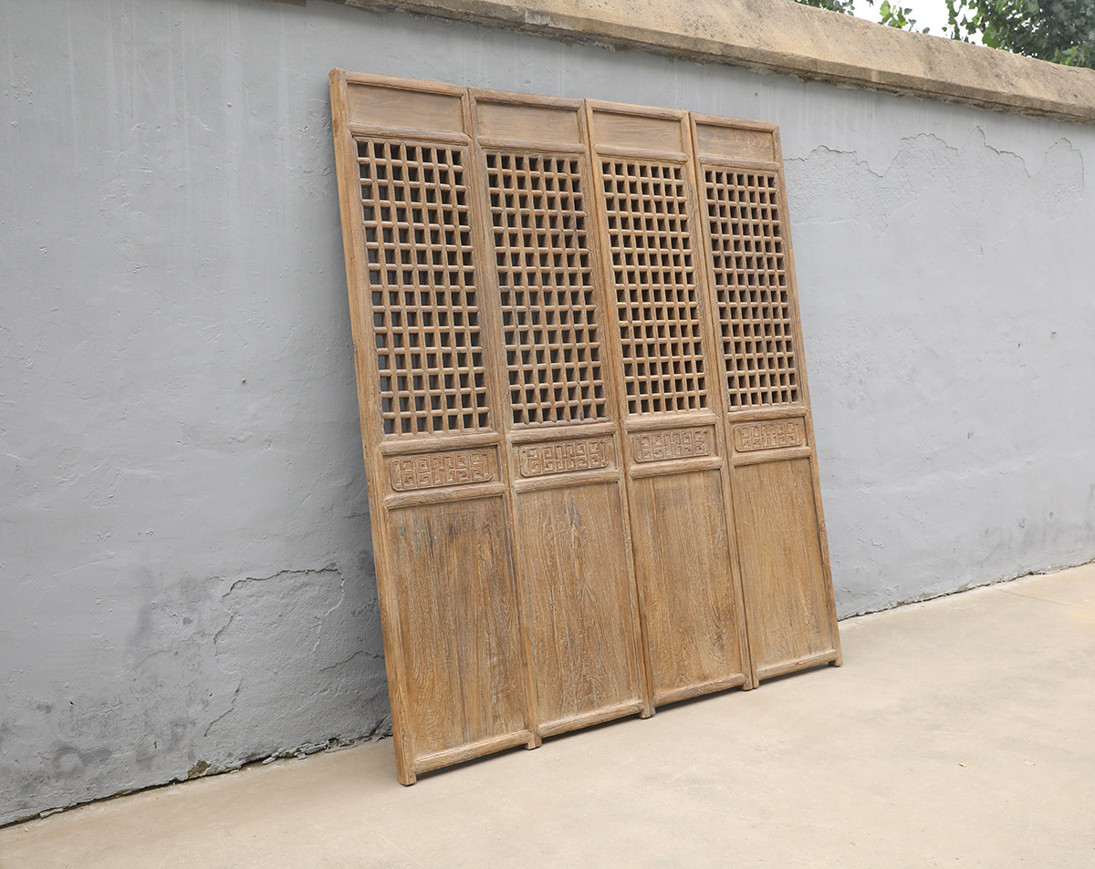 Set of 4 Antique Chinese Carved Pine Wall Panels/Doors/Screens, of high quality and generous proportions. Originally part of an interior wall, c. 1880-1900, with a carved panel below the trellis top. One of my all-time favorites.