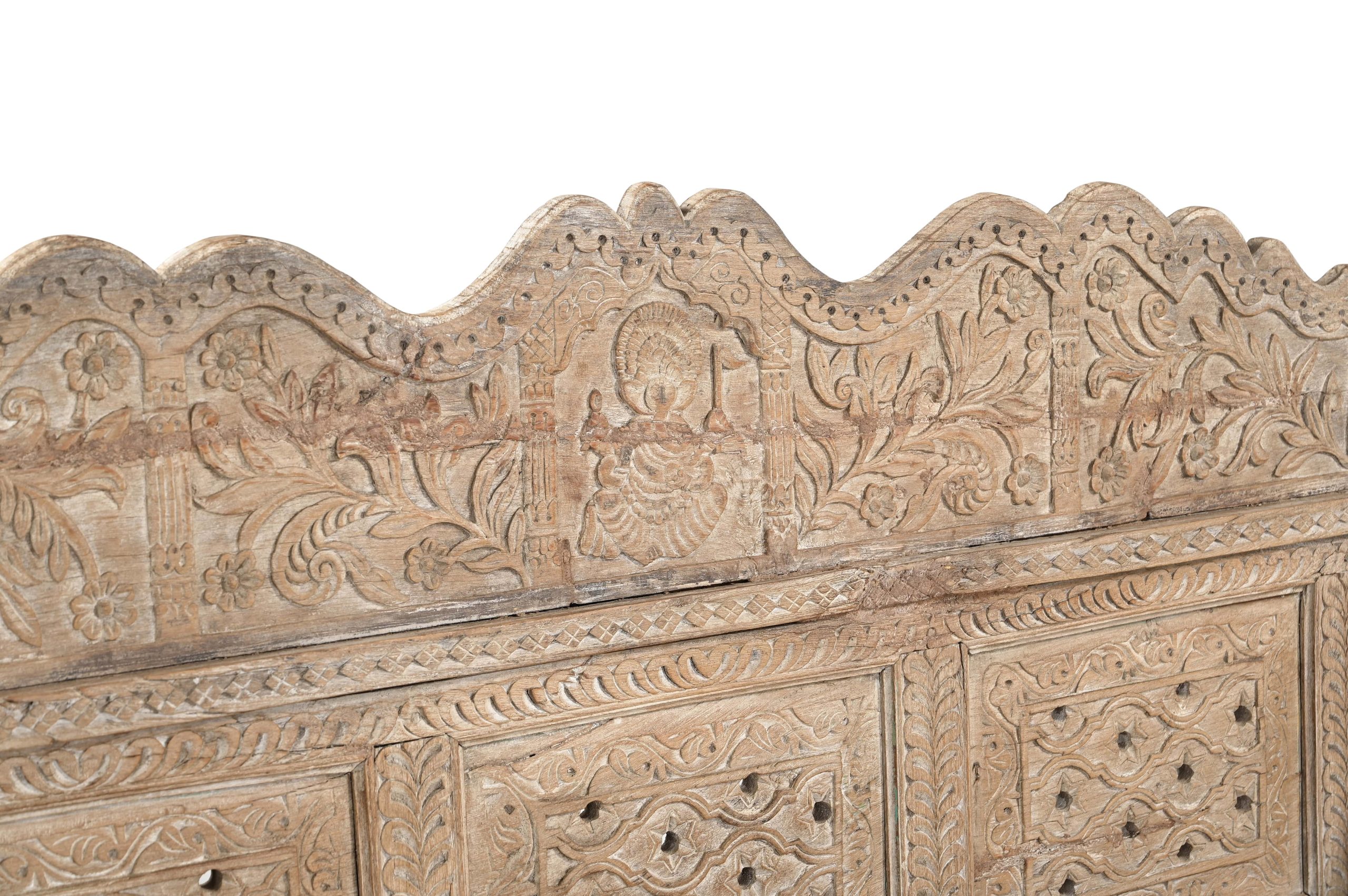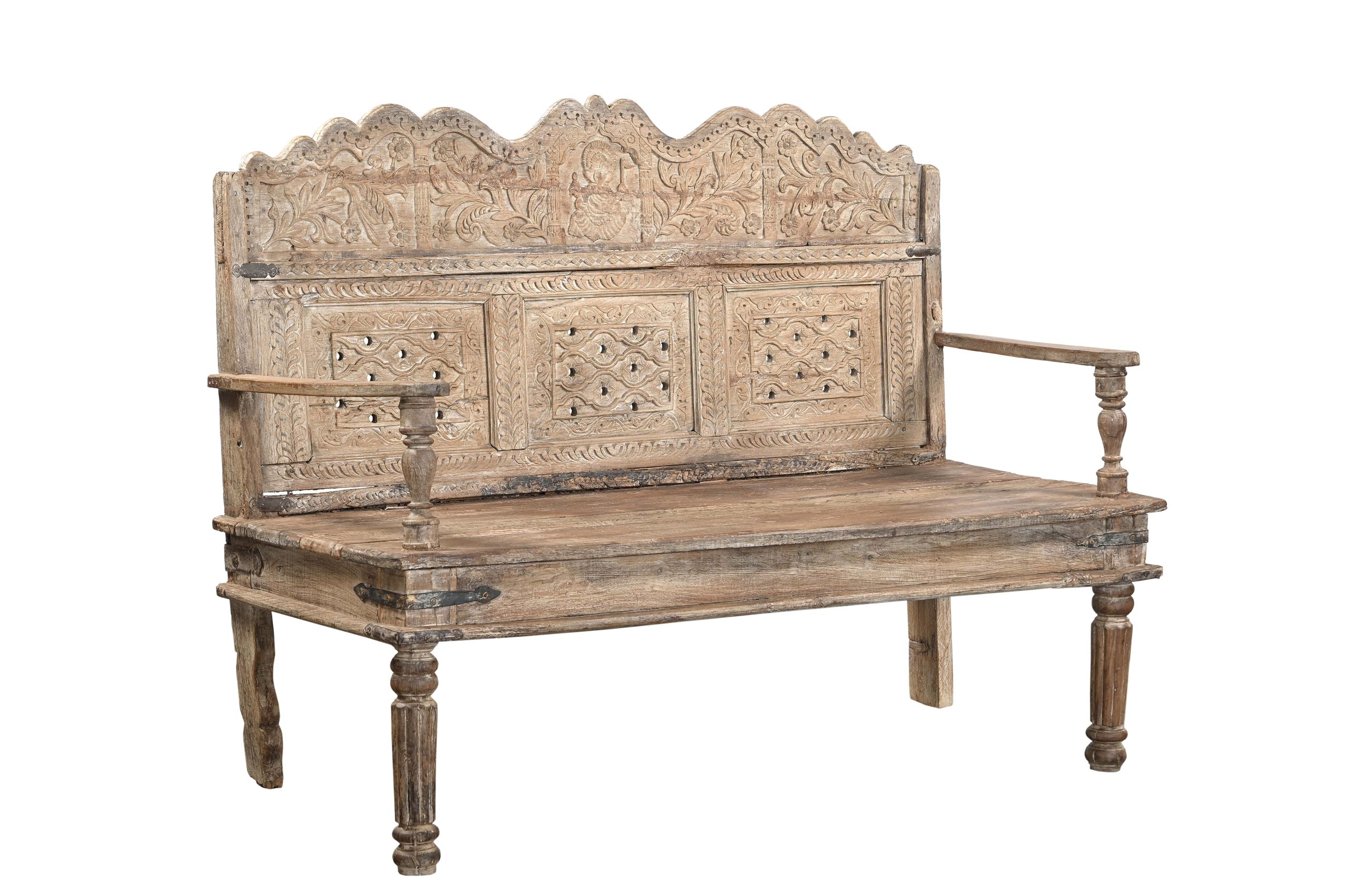 Vintage Anglo-Indian Colonial Style Carved Teakwood Bench, 38Hx62x25