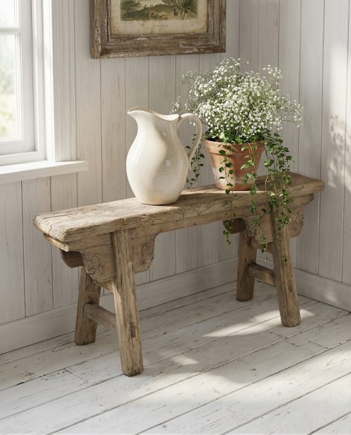 Vintage Chinese Elm Farmer’s Bench, 19Hx48x7.5
