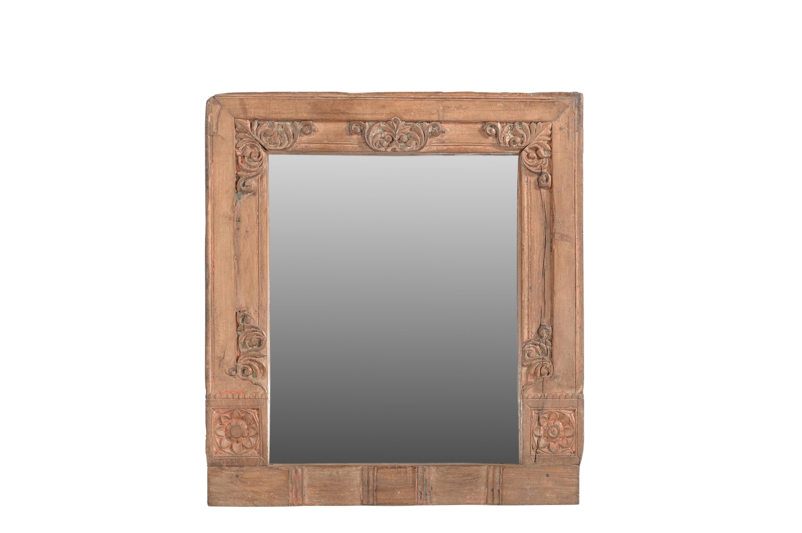 Vintage Indian Carved Teakwood Mirror, 25x23x4