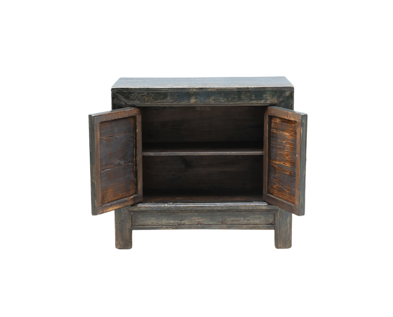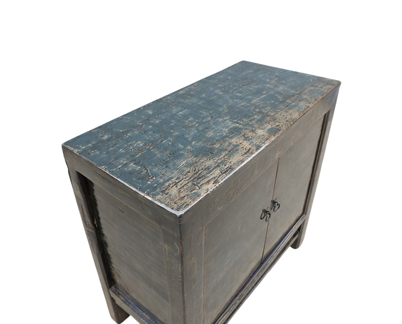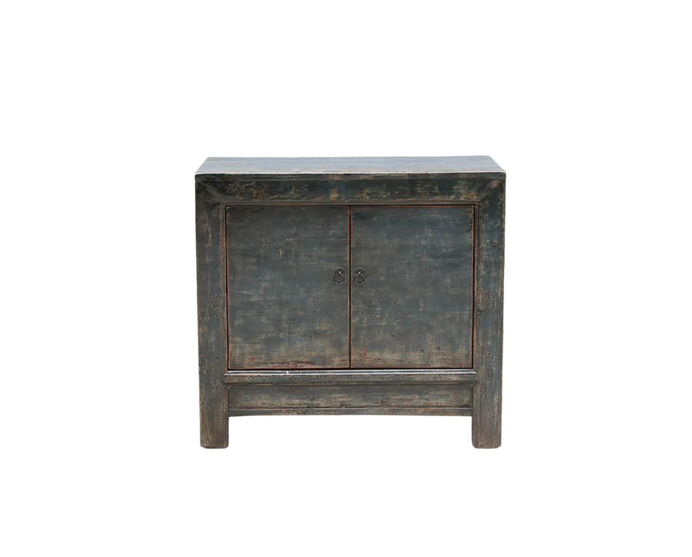 Vintage Chinese Painted Hall Cabinet, now  refreshed in a blue/green aged paint that gives it a timeless, collected look. Its scale and clean design allow it to blend with both modern and traditional interiors.