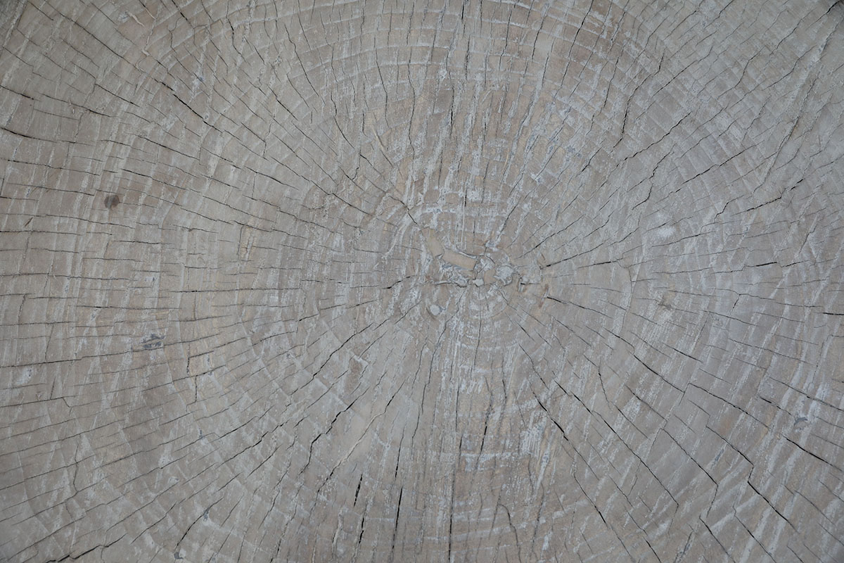 Vintage Elm Slab Coffee Table on Iron Legs, one single 9' slab section, on iron legs in a old vintage color. Perfect smaller round coffee table for any style interior, including mountains and beach.