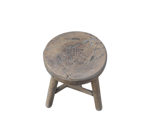Vintage Chinese Elm Stool, with a superb 2" thick slab top with old iron staples, and a "chinese" stretcher connecting the legs. A high quality stool. 20Hx13.5x13.5