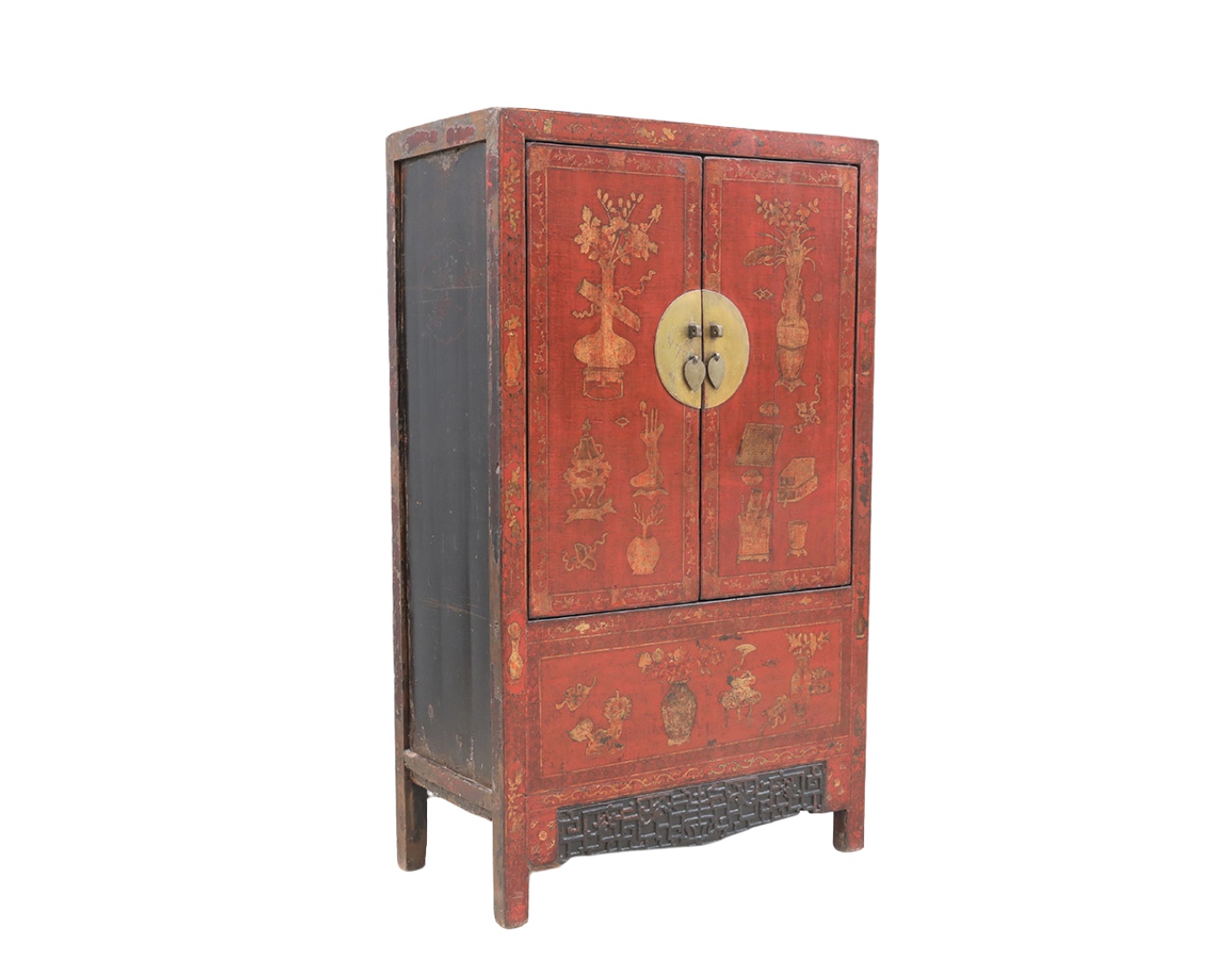 Antique Chinese Painted Elm Armoire, 76.5Hx46x22