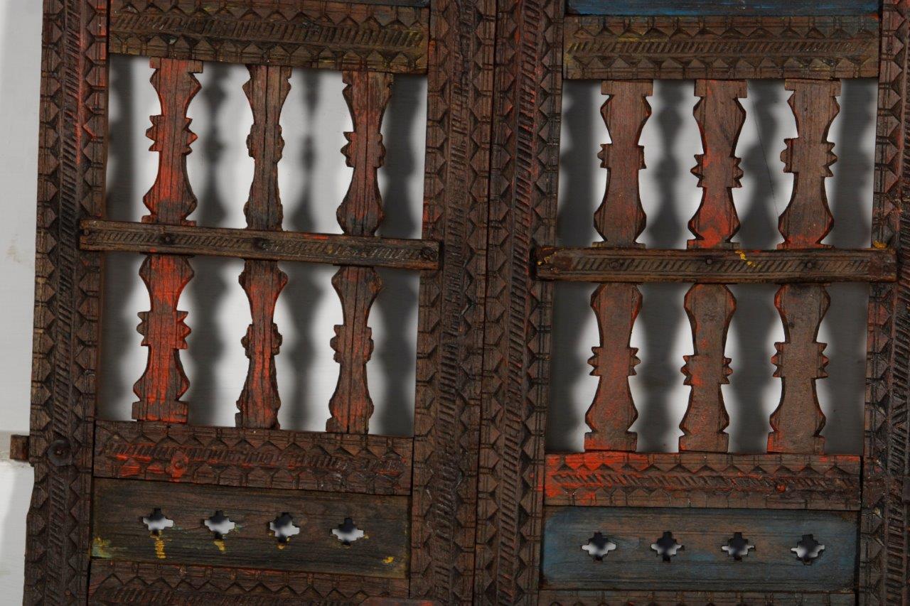 Vintage Indian Painted Teakwood Gate or “Dog Door”, 40Hx37x1.5