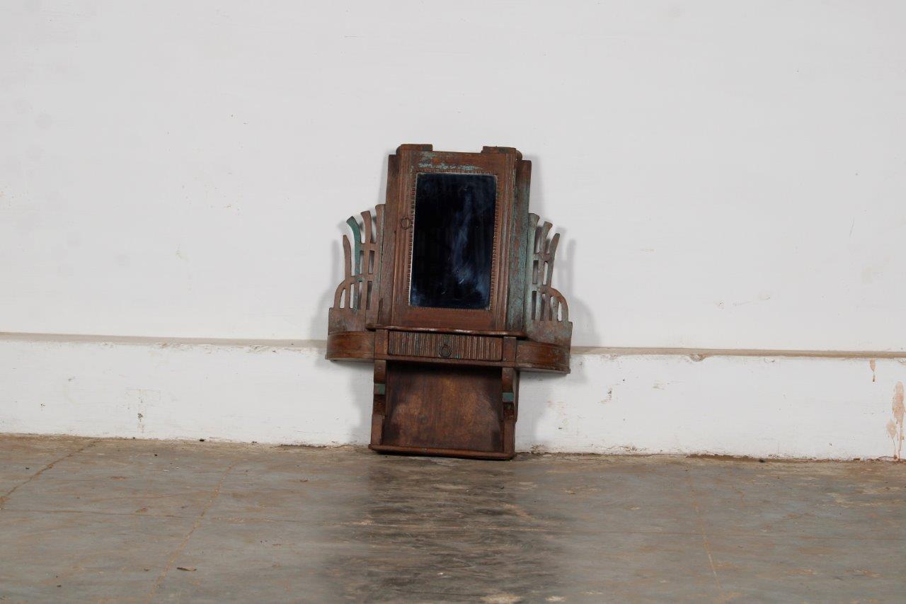 Antique Bleached Teakwood Window Frame Mirror on Iron Legs, 79Hx43x3