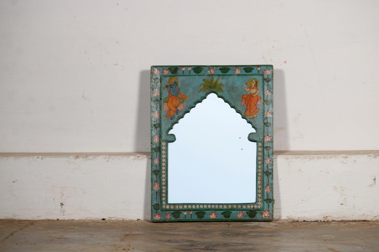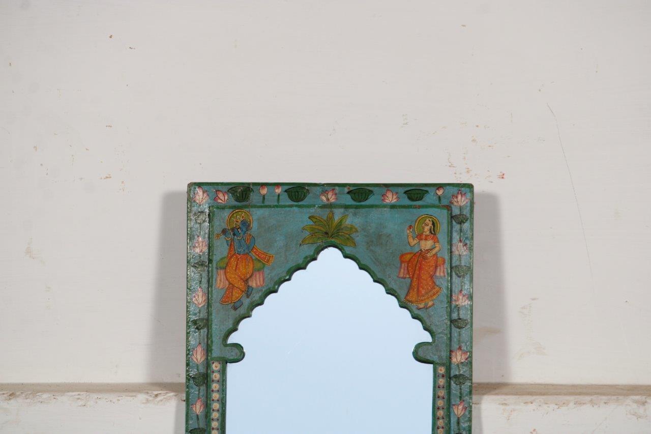 Vintage Indian Painted Teakwood Mirror, 21.5Hx16.5×1