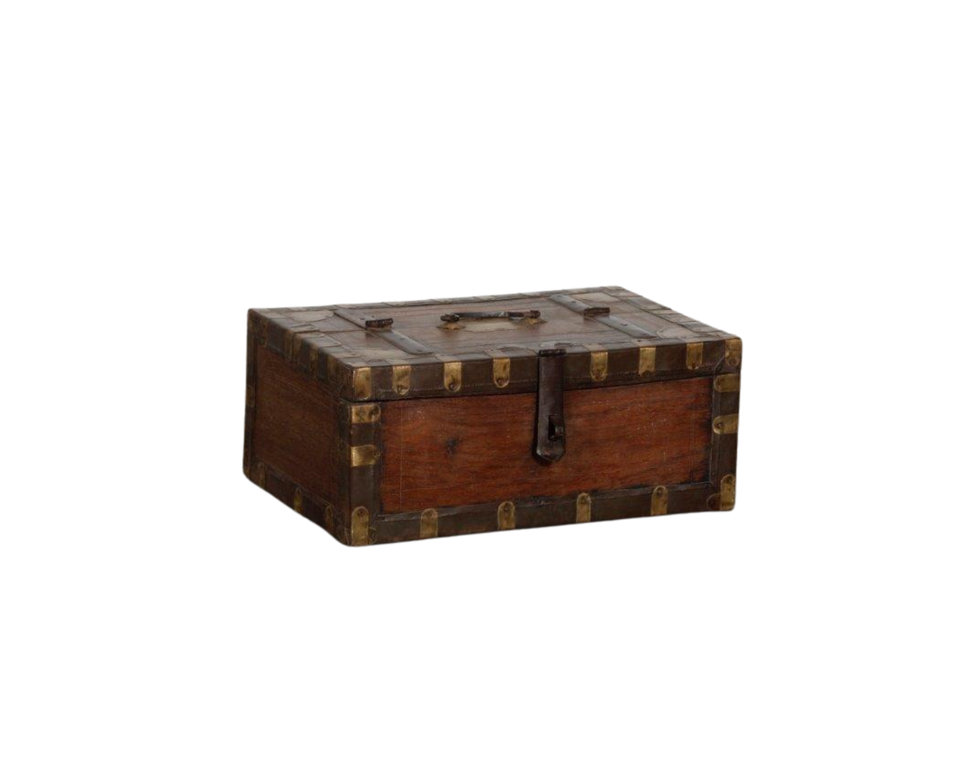 Antique Indian Teakwood Brass Strapped Small Chest, 6.5Hx13x11