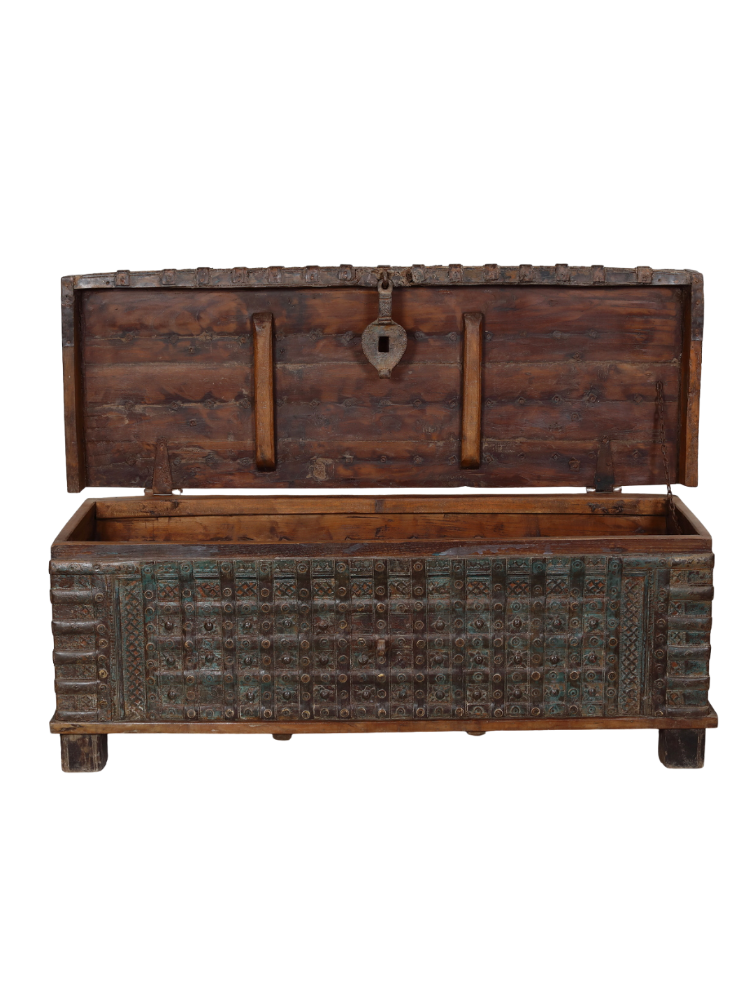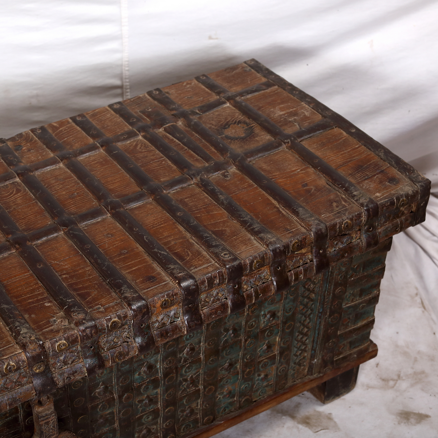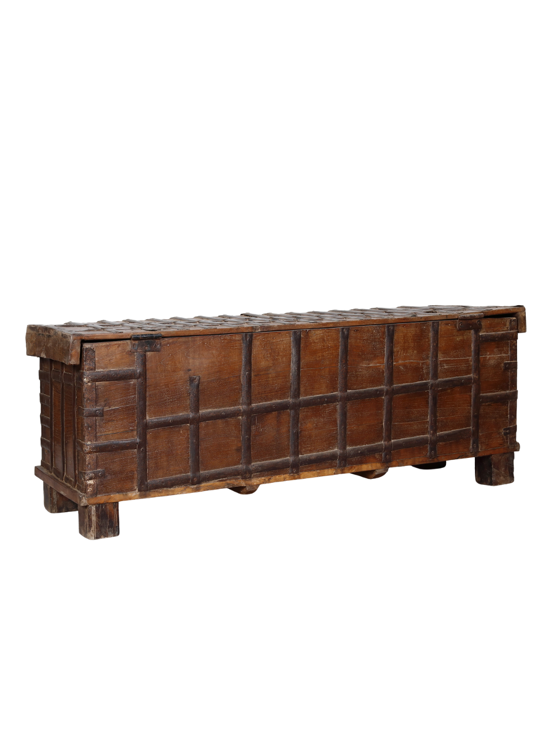 Antique Indian Teakwood Pitara Chest “Bed Bench”, 51x18x19H
